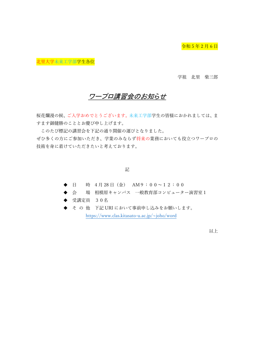 前回までに作成した文章を次のようになるように修正します.